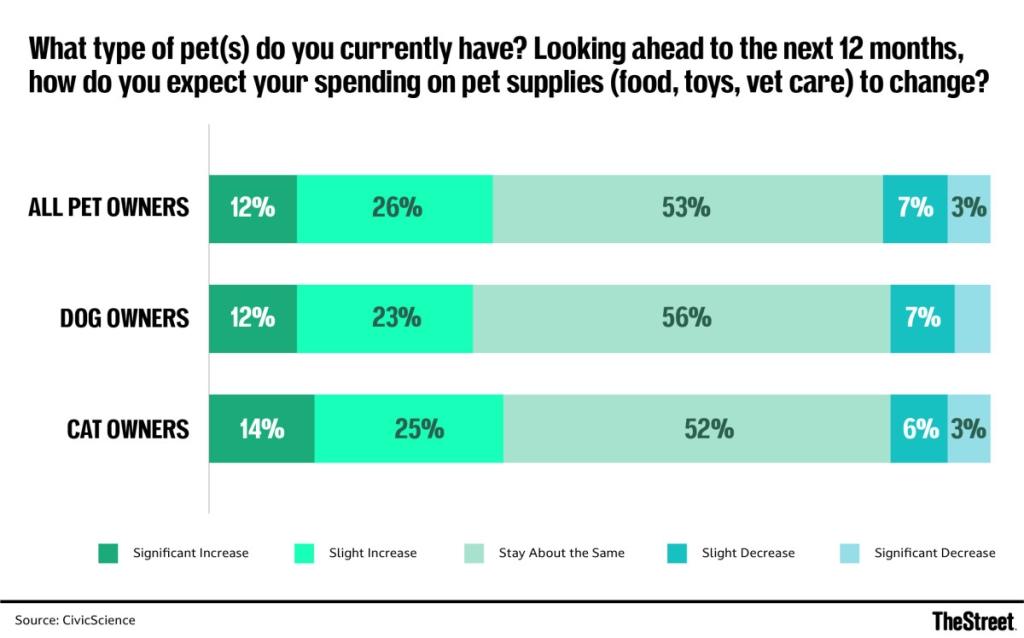 Both dog and cat owners are adding to the rise in pet spending, but the data displays a notable divide between the two groups. Cat owners are leading the charge, with a slightly higher likelihood of increasing their budgets compared to dog owners. Specifically, 14% of cat owners report plans for a significant increase in spending, compared to 12% of dog owners, according to CivicScience.
